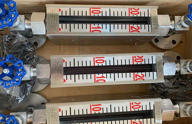 儀表在上下閥上都裝法蘭連接,使保持法蘭表面光潔,通過法蘭與容器連接構(gòu)成連通器,透過玻璃板或玻璃管,可直接讀得容器內(nèi)液位的高度。