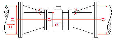 *一,為了加裝變徑管后不過多影響流速場的分布,不影響儀表的測量精度,能把變徑管視為直管段的一部分,要求變徑管的中心錐角α不大于15°,越小越好,如下圖
