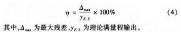 本文采用*小二乘法進行線性度評定,即擬合直線為*小二乘直線。*小二乘直線保證了傳感器至*輸出的平均值對它的偏差的平方和為*小,即可以保證擬合直線得到的結果與實測結果之間的偏差很小,更具可靠性。根據定義,線性度即是校準曲線對這條*小二乘擬合直線的偏離程度。