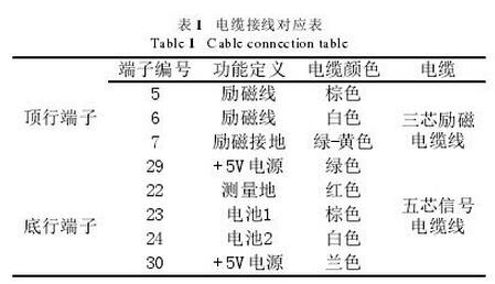 ---將用于檢測傳輸是否正確的三芯勵磁電纜線和五芯信號電纜線按如下表格1連接:切記轉換器和傳感器上的電纜線連接一定要一一對應。