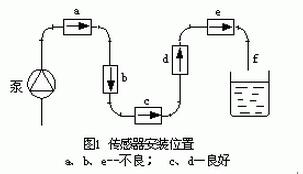水平安裝時(shí)要使電*軸線平行于地平線,不要處于垂直于地平線,因?yàn)樘幱诘撞康碾?易被沉積物覆蓋,頂部電*易被液體中偶存氣泡擦過(guò)遮住電*表面,使輸出信號(hào)波動(dòng)。圖1所示管系中,c、d為適宜位置;a、b 、e為不宜位置,b處可能液體不充滿,a、e處易積聚氣體,且e處傳感器后管段短也有可能不充滿,排放口*好如f形狀所示。對(duì)于固、液兩相流c處亦是不宜位置。
