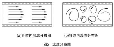 當 Re > Rec 時,管道內流體為湍流(湍流是流體的不規則運動,流場中各種量**間和空間坐標發生紊亂地變化),如圖 2(b)所示。