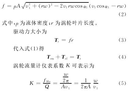 渦輪在轉動時所受的力矩大致可分:流體對渦輪的推動力矩Tr,機械摩擦力矩Trm,流體對渦輪產生的流動阻力矩Trf和電磁阻力矩Tre。渦輪運動方程可以表示為