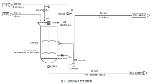 盡管這次跑漿回收實驗結果不是特別理想,由于實際生產中的一些因素存在,導致與理想結果存在偏差,但是卻為我們下一步整改方案指明了方向。通過合理優(yōu)化跑漿回收罐入口管線坡度,斜坡沖洗水使用磨煤機進料中的一部分水,跑漿回收系統(tǒng)調整為持續(xù)供水,保證磨煤機水煤比調控,從而提高煤漿濃度,達到降低能耗、降低勞動強度的目的。
