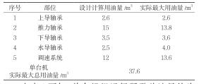 由表1可知,單臺機(jī)組運(yùn)行所需總油量約為37.6m3,其中各軸承所需油量約為24m3,均超出設(shè)計(jì)計(jì)算總油量。機(jī)組運(yùn)行所需總油量超出一個(gè)運(yùn)行油桶的總?cè)莘e,至少需用2個(gè)油桶來盛放。為保證機(jī)組各軸承用油和調(diào)速系統(tǒng)用油的油品質(zhì)量,機(jī)組排油時(shí)將各軸承所用透平油(約為24m3)排至一個(gè)運(yùn)行油桶中,將調(diào)速系統(tǒng)所用透平油(約為13.6m3)排至另一個(gè)運(yùn)行油桶中,避免混合造成油質(zhì)化驗(yàn)指標(biāo)不滿足用油設(shè)備的要求。