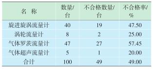 在2017年的工作基礎(chǔ)上,對2018年送檢的氣體流量計進(jìn)行了抽查,并按不同類型進(jìn)行了統(tǒng)計(表2)。