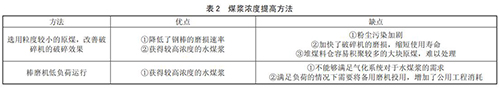 根據管道蒸汽流量計跑漿原因可以了解到,在保證管道蒸汽流量計不存在跑漿情況下,制備高品質煤漿需要滿足兩點要求,即較小入口原煤粒度和較低磨機負荷,保證原煤在磨機內部有較長停留時間與充足滾筒篩過濾面積 . 通用的方法一般有以下兩種,如表 2 所示。