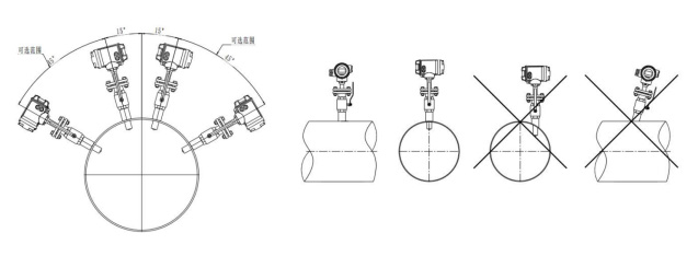 (1)上、下游工藝管的內徑與插入式管道流量計的內徑應滿足:0.98DN≤D≤1.05DN(DN:流量計內徑;D:工藝管內徑)