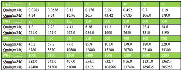 當介質流速達不到要求時,應當選用較小口徑這時應使用異徑錐管或修改部分管道,使其與徑,但前后直管段至少須滿足:前直管段≥管道≥2DN(DN 為管徑)