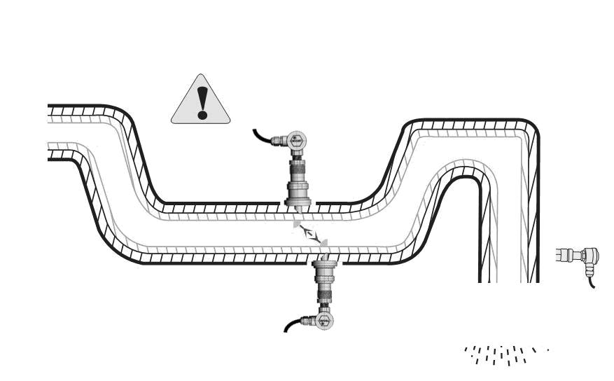 注意 1. 兩個探頭要安裝在管道管軸的水平方向上;2. 探頭的安裝方向。