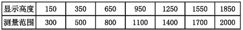 7.顯示高度與測(cè)量范圍關(guān)系,見(jiàn)下表:(顯示高度即標(biāo)尺高度)單位:毫米